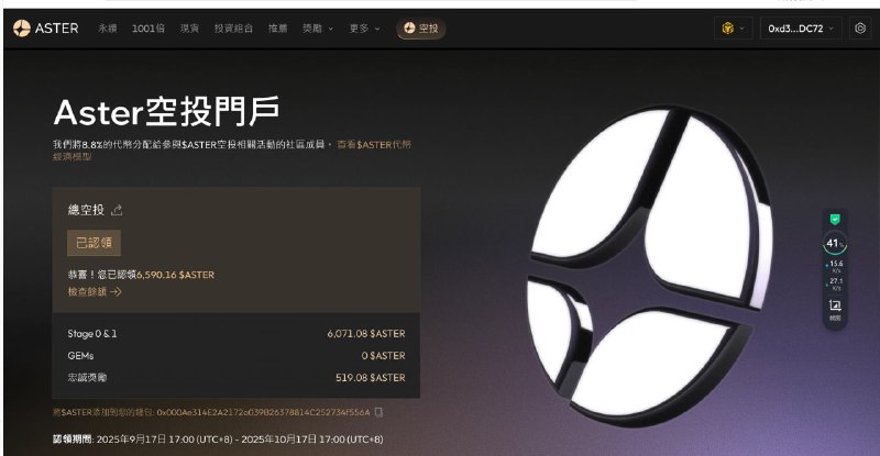 【Aster发空投了大腿拍断了】单号aster空投2000个,按0.3U每个,相当于空了一部IPHONE 17,投入产出比10倍,有潜力的空投回报率还非常不错,这还是没有上交易所的回报率就已经那么高了